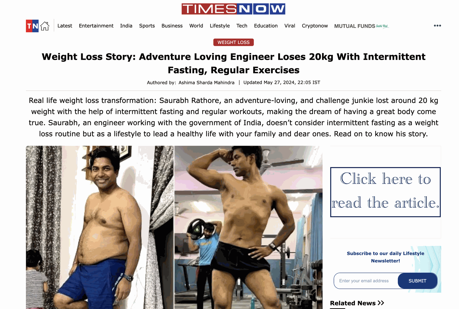 I lost 10 kgs of body fat in this one year and I never had to starve myself or follow extreme diets. What made this fitness program different was its simple, sustainable approach. I learned how to eat complete, nutritious meals within a fixed 8-hour window. No crash diets, no cutting out food groups — just real, balanced nutritious food, consistency and smart timing.