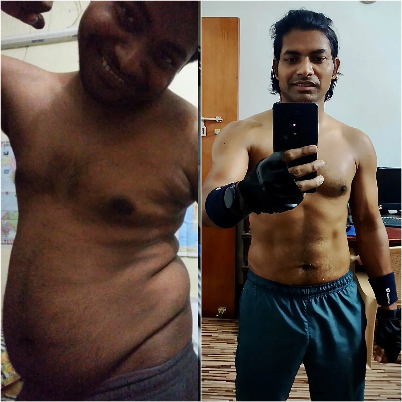 He weighed above 90 kg and his situation was worsening. He then thought to take the matter seriously. He didn't know anything about nutrition and fitness so he started gaining knowledge through books, internet and youtube. He even joined professional nutritional programs to know about the science behind fitness. He implemented that knowledge on himself and lost more than 25 kg purely through discipline, clean eating, yoga, home workout and consistency.